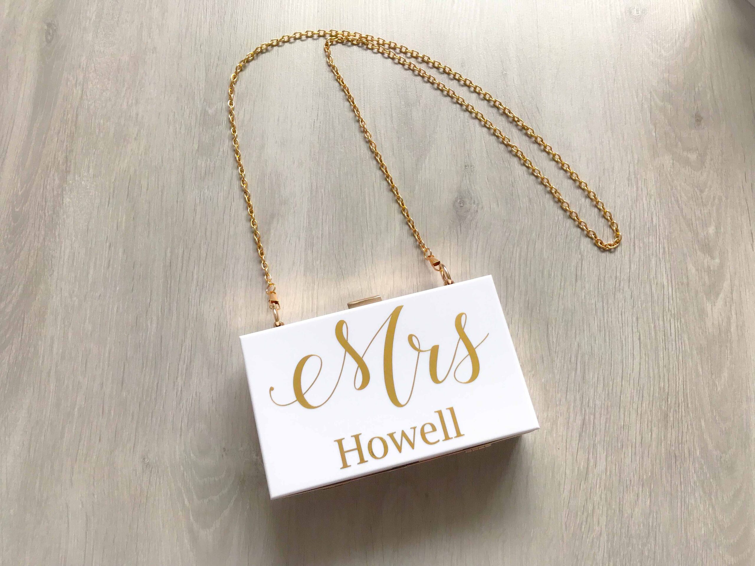 personalised mrs clutch bag