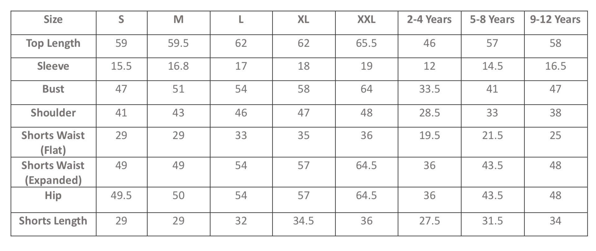 Cotton Shorts Size Quide
