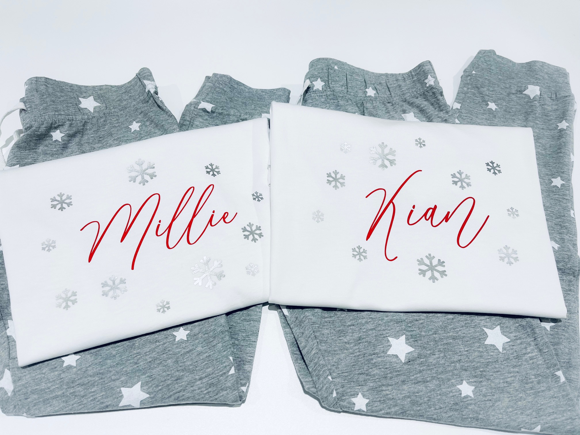Red Text, Silver Snowflakes Published December 2, 2025 at 2016 × 1512 in Personalised Children’s Christmas Matching Family Pyjamas ← Previous