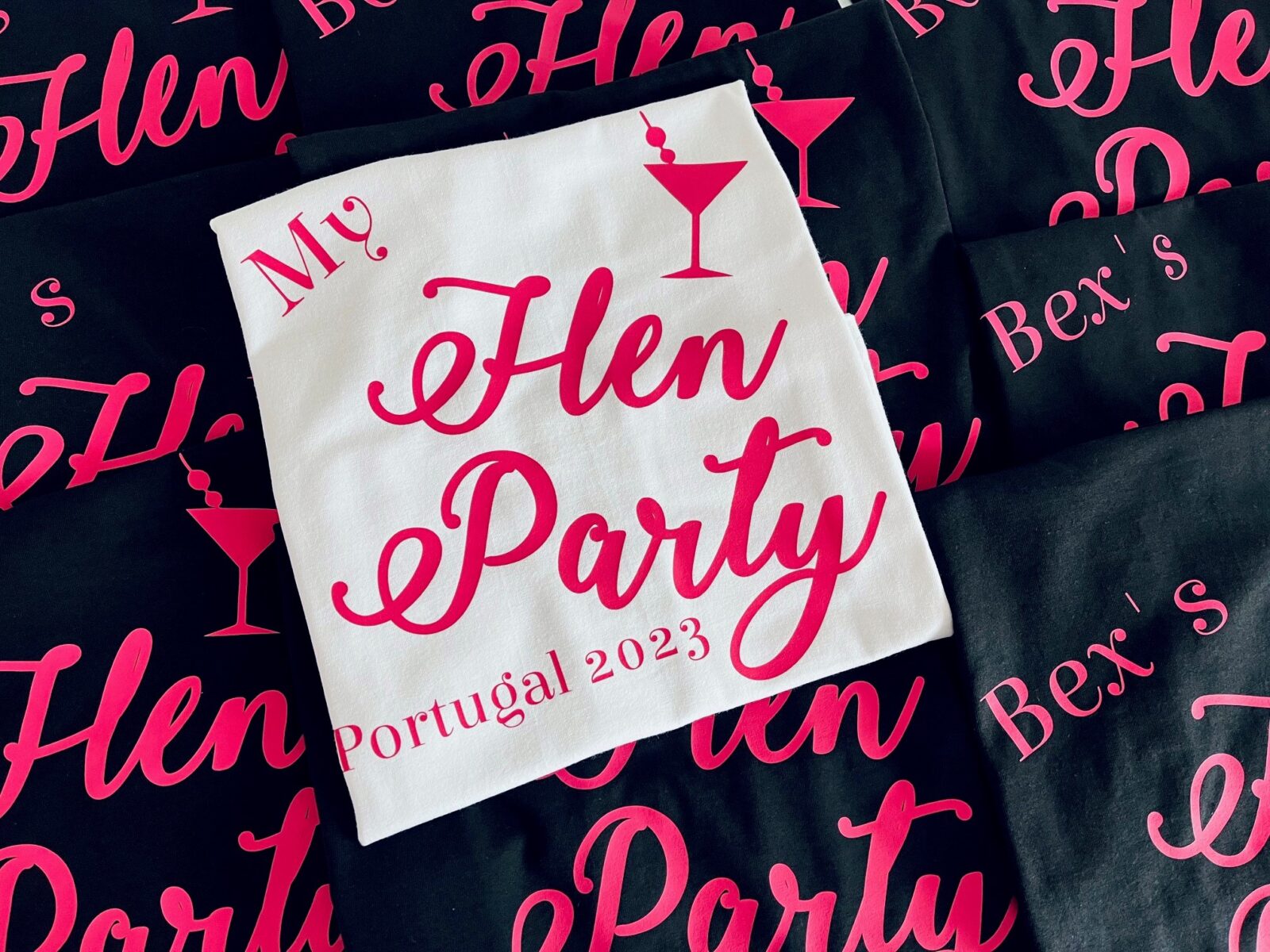 Hen do t-shirts are ideal for any type of hen do. Whether your hen do is a daytrip, an evening do or a weekend away, personalised t-shirts are an ideal addition for any hen do. As we supply a range of t-shirts, we will have plenty of t-shirts to complement your hen do.