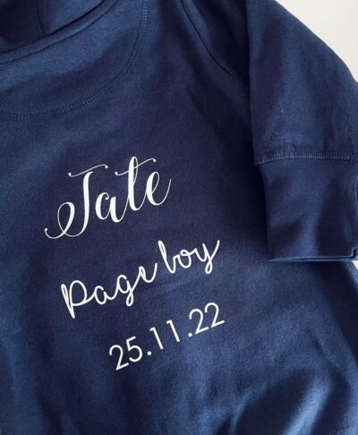 Crafted from a soft cotton blend, this all-in-one is designed for comfort and practicality while looking adorable. Each onesie is personalised with your child’s wedding role and name, creating a keepsake they’ll cherish long after the celebrations are over.