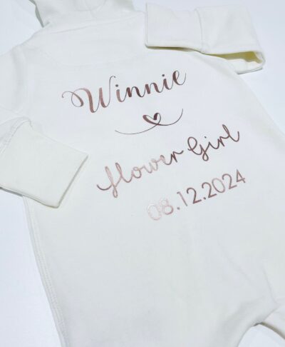 Make your little one feel extra special on the big day with our Children’s All In One Wedding Role Onesie. Perfect for flower girls, page boys, bridesmaids, and mini ushers, this cosy personalised onesie is a thoughtful way to celebrate their important role in your wedding.