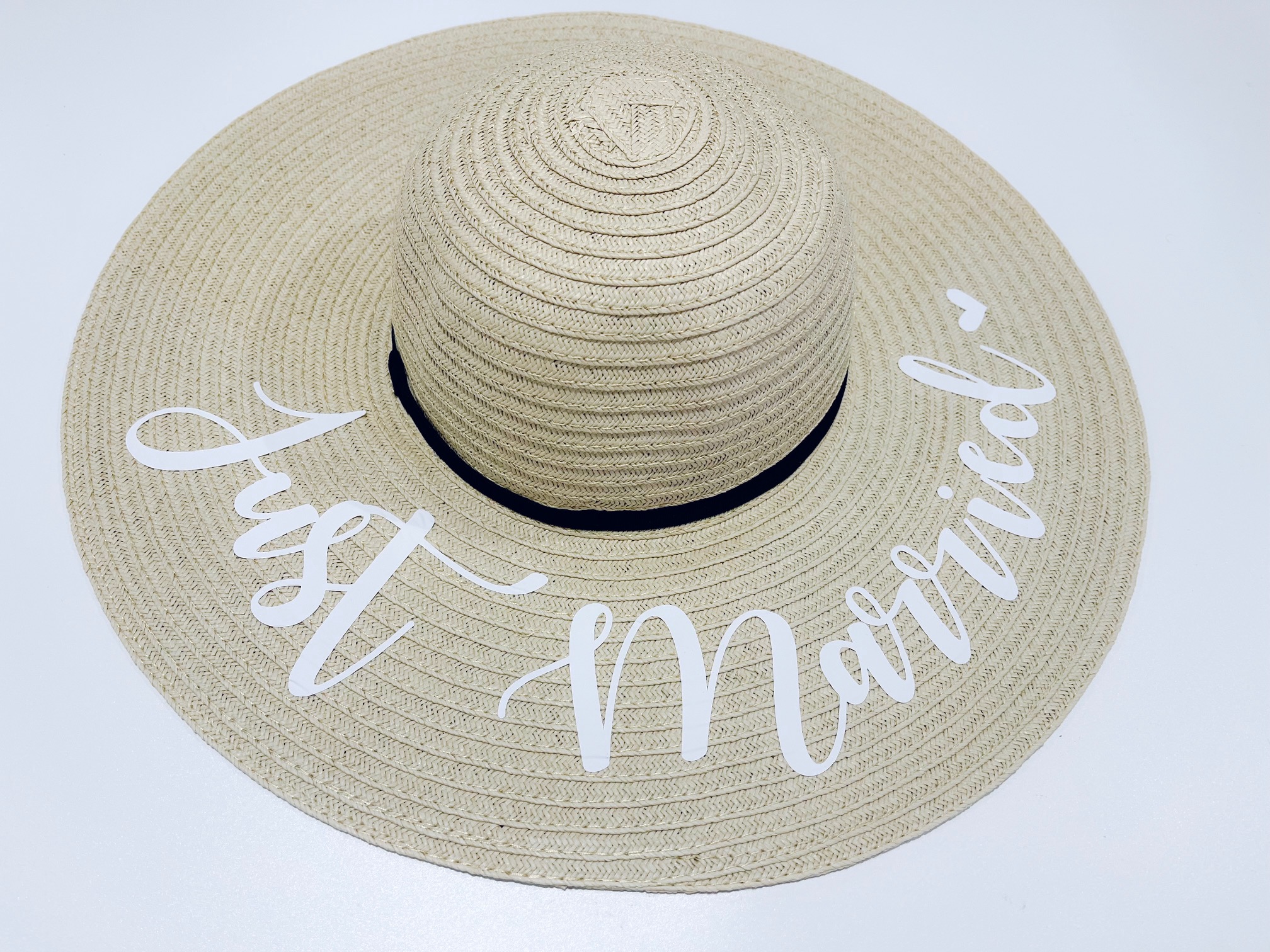 Celebrate your newlywed status in style with our Just Married Sun Hat, the perfect honeymoon accessory for every bride. Designed with a chic wide brim and bold “Just Married” script, this elegant sun hat is both fashionable and practical – keeping you cool and protected while showing off your new title.
