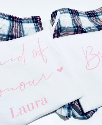 Celebrate your wedding in style with our Personalised Bridal Party Short Pyjamas, the perfect mix of comfort and elegance for your bridal party. Whether you’re getting ready on the morning of the big day, hosting a hen party, or enjoying a cosy bridal sleepover, these matching pyjama sets make every moment extra special.