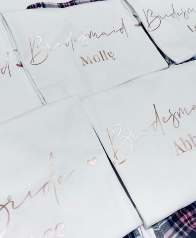 Variety of colours – Choose from a selection of shirt colours and text options to match your wedding theme.