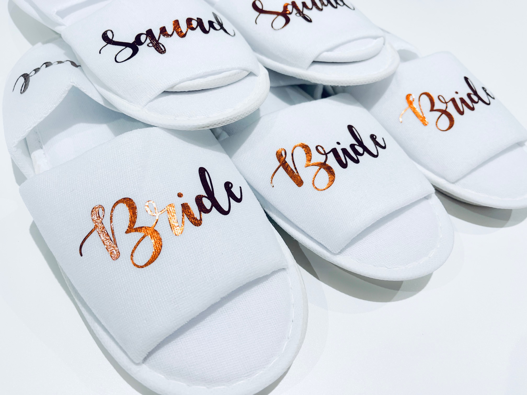 Personalised bride squad slippers for bridesmaids and maid of honour