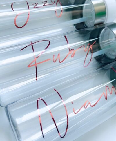 These personalised water bottles make the perfect gift for the Bride to be. They are also a great way to stay hydrated on the hen do. The bottle comes with a flip top straw for easy drinking.