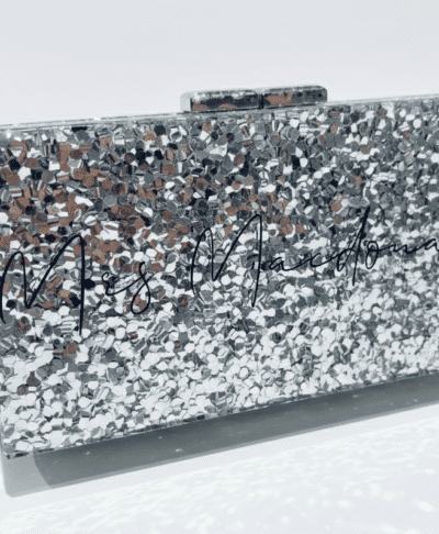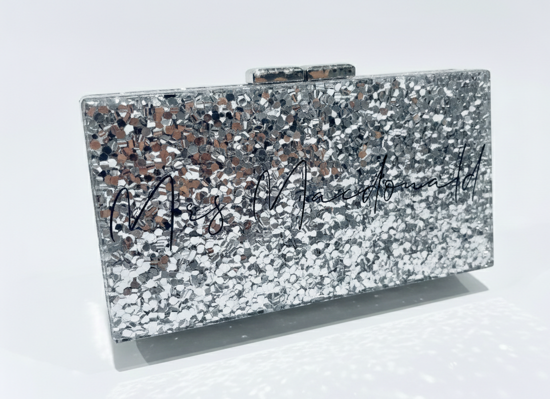Shine in style with our Personalised Glitter Mrs Clutch Bag – the ultimate bridal accessory for wedding days, hen parties, and honeymoon adventures. Customised with your new surname, this sparkling clutch makes the perfect statement piece while keeping all your essentials safe in chic fashion.