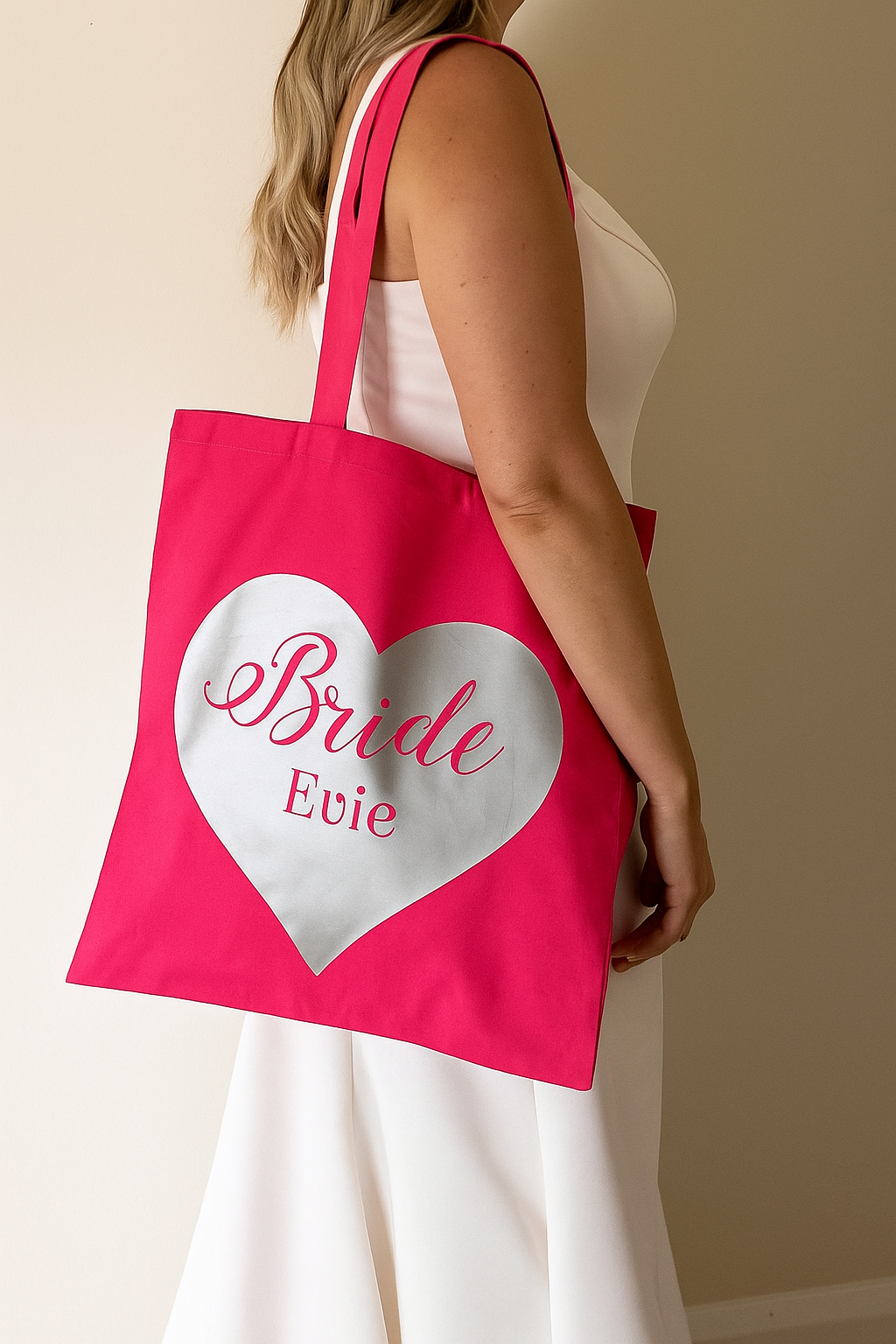 Personalised Heart Canvas Bag – Bride & Bridal Party Gift