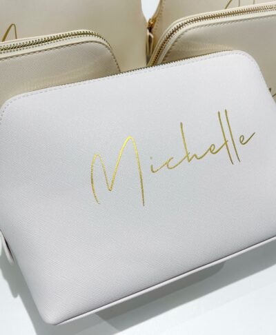 Each bag is beautifully personalised with your name, initials, or title in a stunning selection of colours, making it a unique accessory or thoughtful gift. Whether you’re treating yourself, surprising a bride to be, or gifting your bridesmaids, this personalised make up bag is a timeless keepsake they’ll use every day.