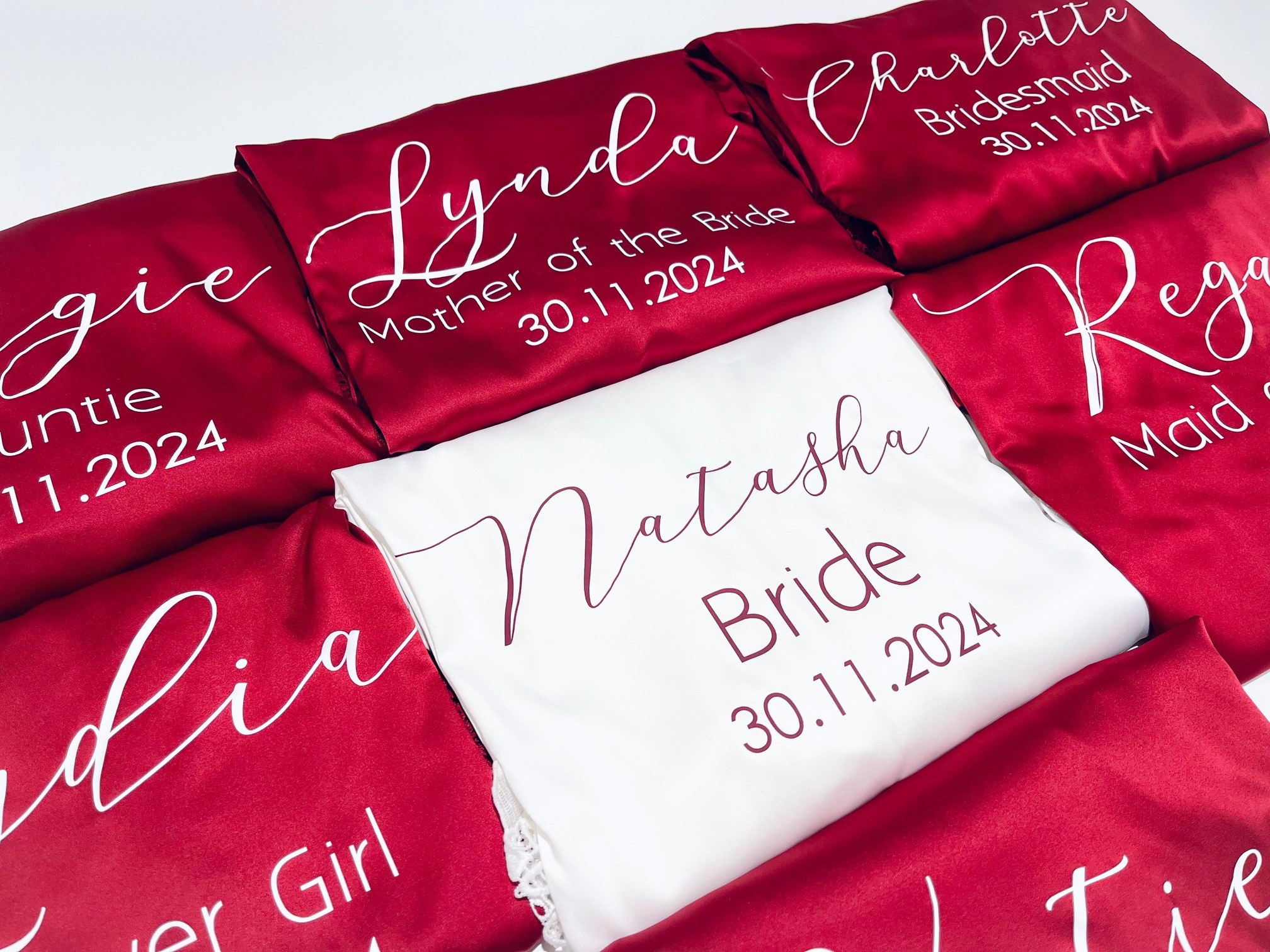 Fully Personalised – Customise with names, initials, or wedding roles (Bride, Bridesmaid, Mother of the Bride, etc.) in your choice of font and colour.