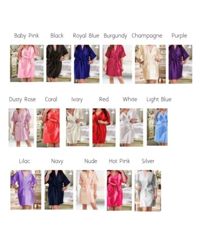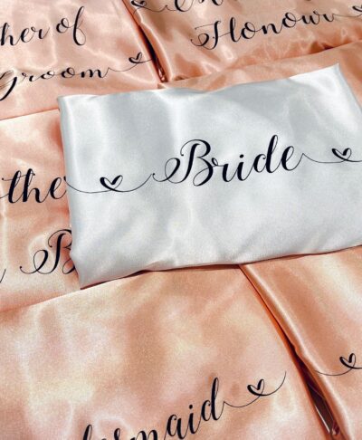 Each robe is customised with your chosen name, initials, or wedding role – such as Bride, Bridesmaid, or Mother of the Bride. Available in a wide range of colours and sizes, our personalised satin robes are perfect for bridal parties, hen nights, and morning of wedding photos.
