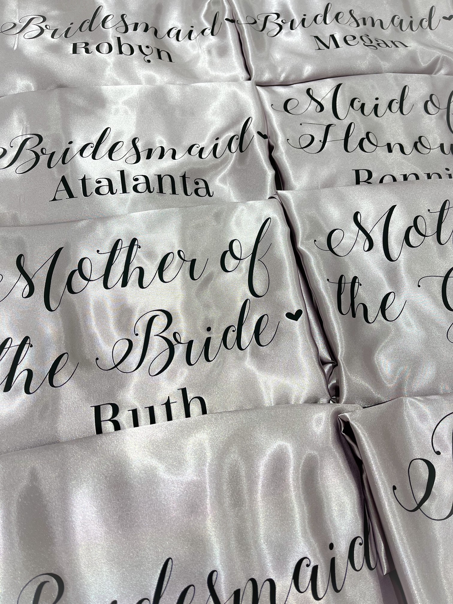 Personalised with name and wedding role (Bride, Bridesmaid, etc.)