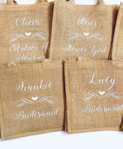 Your wedding party plays such an important role on your big day – show your appreciation with a custom jute bag that they can use again and again. Whether it’s for bridesmaids, the maid of honour, or even the groom’s party, these bags add a special touch to your wedding celebrations.