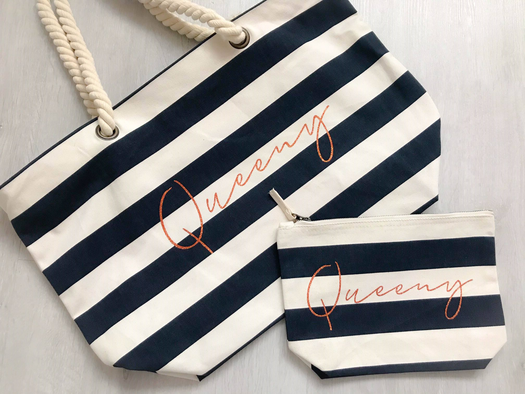Navy Stripe With Copper Glitter Published August 4, 2020 at 2016 × 1512 in Personalised Glitter Name Stripe Beach Bag Set ← Previous Next →