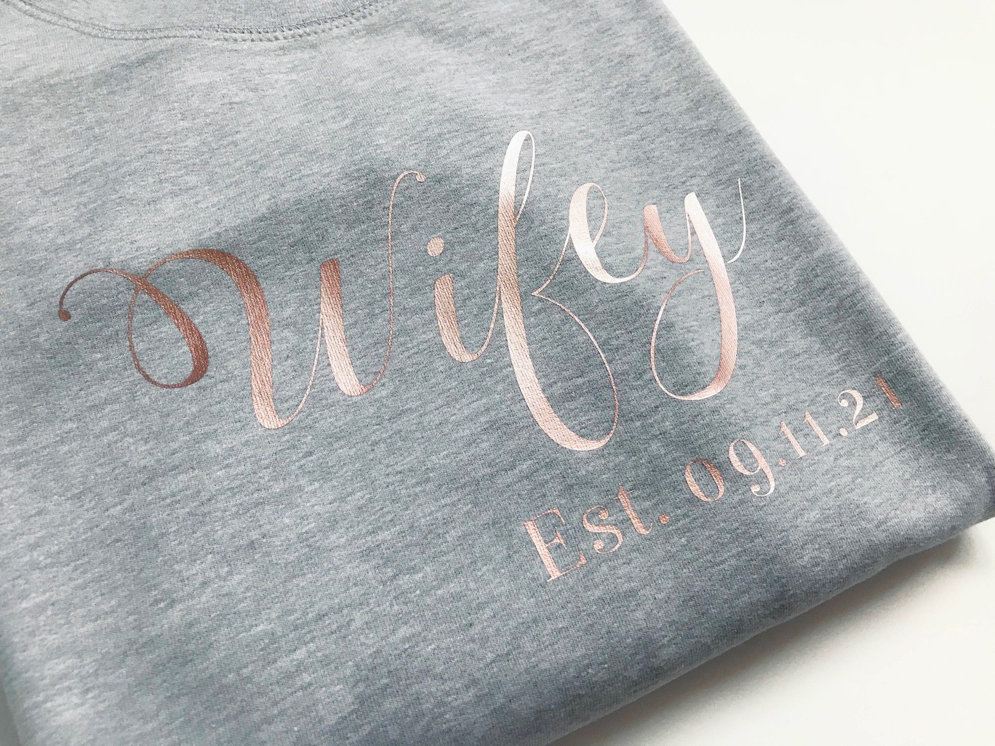 Light Grey – Rose Gold Pearl Text Published January 3, 2022 at 2016 × 1512 in Personalised Wifey Sweatshirt Jumper ← Previous Next →