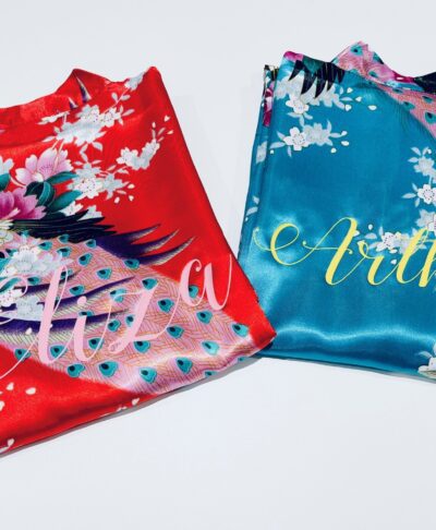 Add a touch of elegance to your little one’s wedding morning look with our Children’s Personalised Peacock Satin Robe. Perfect for flower girls, junior bridesmaids, or any young member of your bridal party, this luxurious satin robe is designed with a stunning peacock print and can be personalised with their name and wedding role for a unique keepsake.