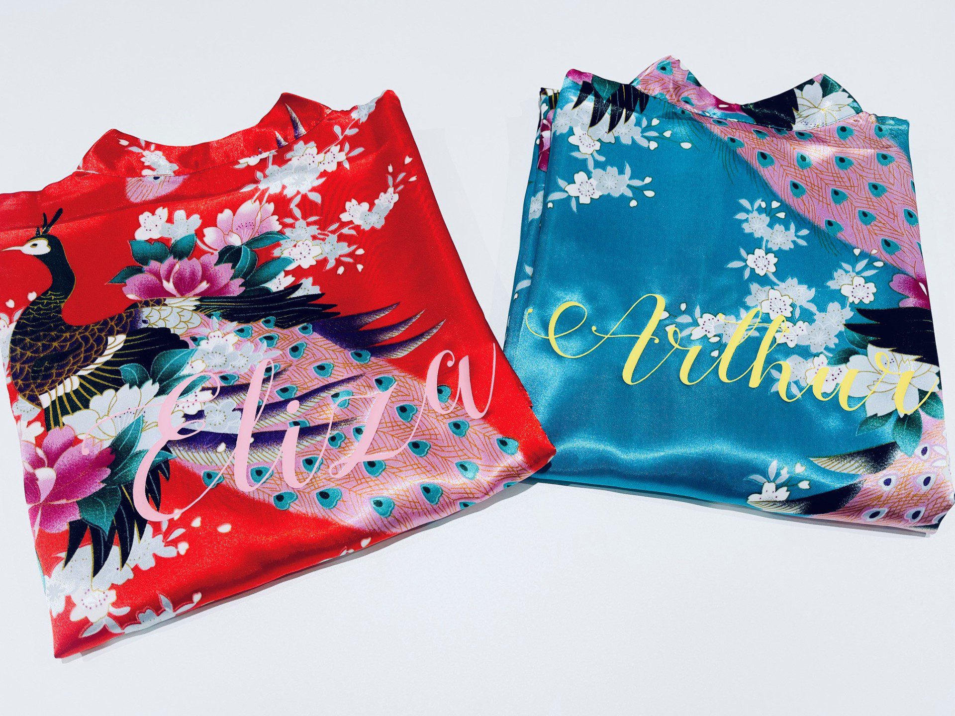 Children’s Personalised Peacock Satin Robe – Flower Girl & Junior Bridesmaid Gift