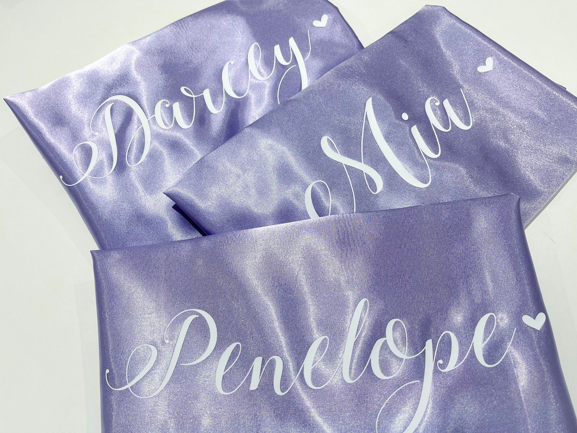 Perfect for wedding morning photos, these personalised children’s satin robes create heart warming memories while complementing your bridal party style.