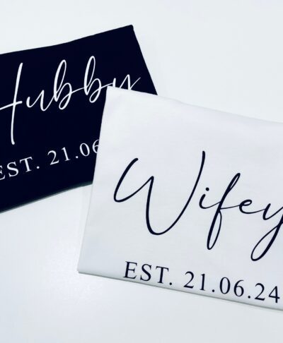 Custom printed with “Hubby” and your wedding date (e.g. EST. 21.06.24)