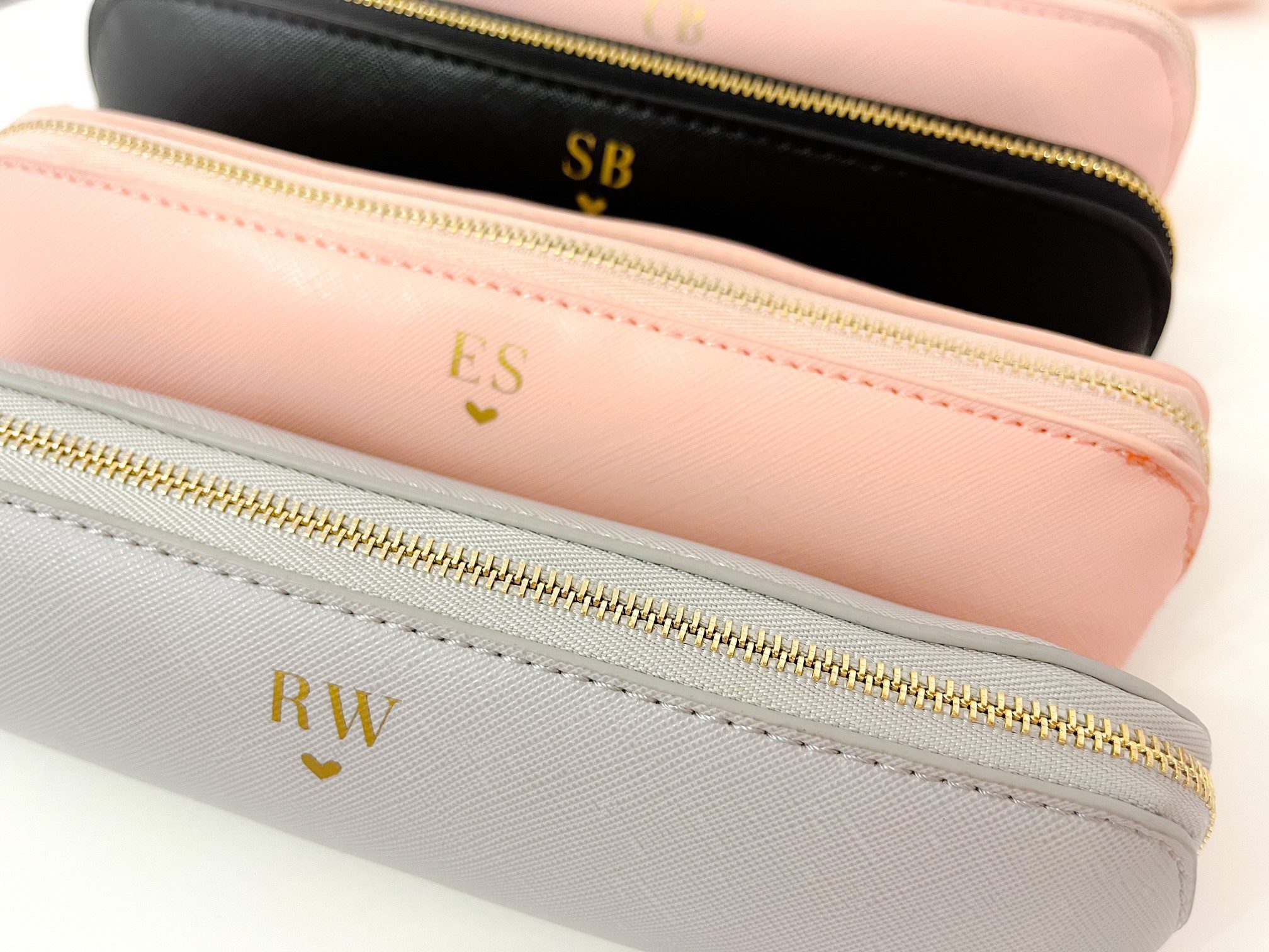 Designed with a sleek, leather-look finish and fully customisable with a name or initials, this mini case makes the perfect gift for bridesmaids, birthdays, or anyone who loves to stay organised in style.